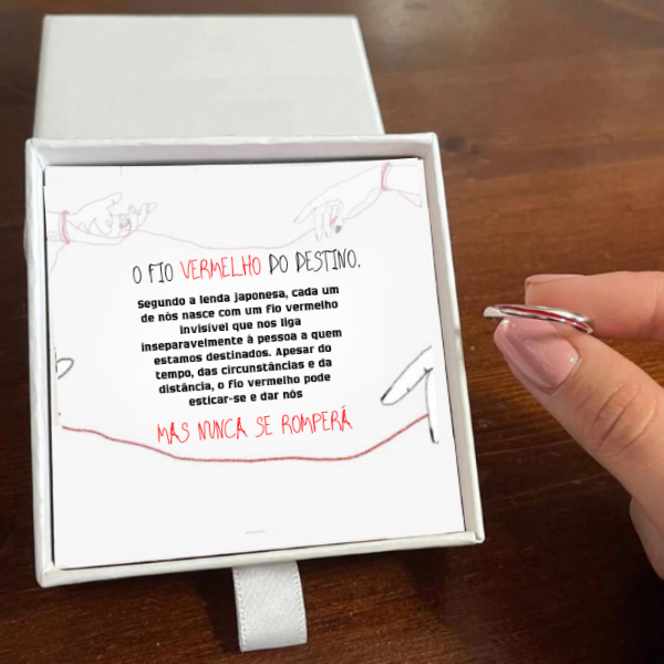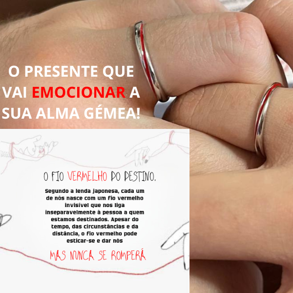 O nosso par de anéis é o presente perfeito para o seu parceiro, mas atenção, não é apenas para casais, o poder da Lenda do Fio Vermelho do Destino estende-se ao vínculo que tem com qualquer pessoa que ama.